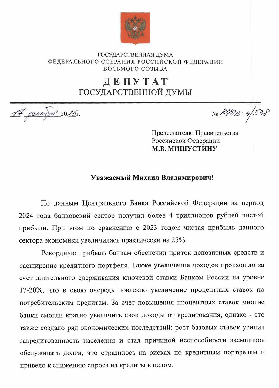 Депутаты от КПРФ обратились к правительству с предложением заставить банки поделиться сверхприбылями.